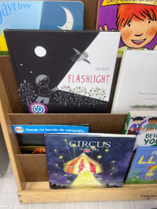 Recently, while at Children’s Council in San Francisco for a meeting, I noticed a familiar book sitting on the family waiting area’s bookshelf—Flashlight by Lizi Boyd, one of the many books Tandem distributes through our programs. Naturally, I had to take a photo. There’s always something special about spotting a Tandem book “in the wild.”